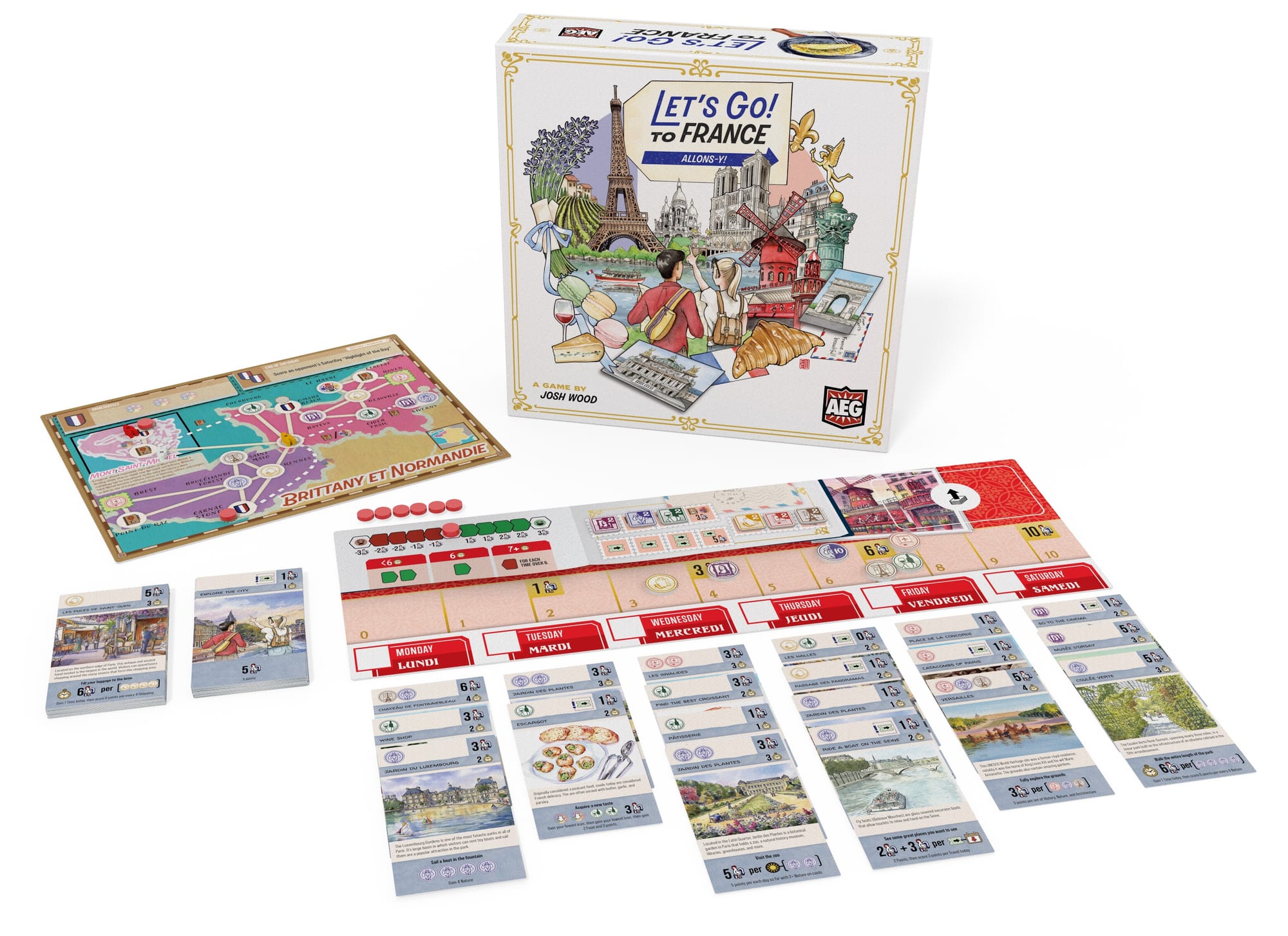 Nach dem Erfolg von Let's Go! To Japan plant Designer Josh Wood den nächsten Abstecher. Diesmal geht die Reise nach Frankreich. Publisher AEG hat die Kickstarter-Vorschauseite bereits freigeschaltet. Die Kampagne startet im Mai 2026.