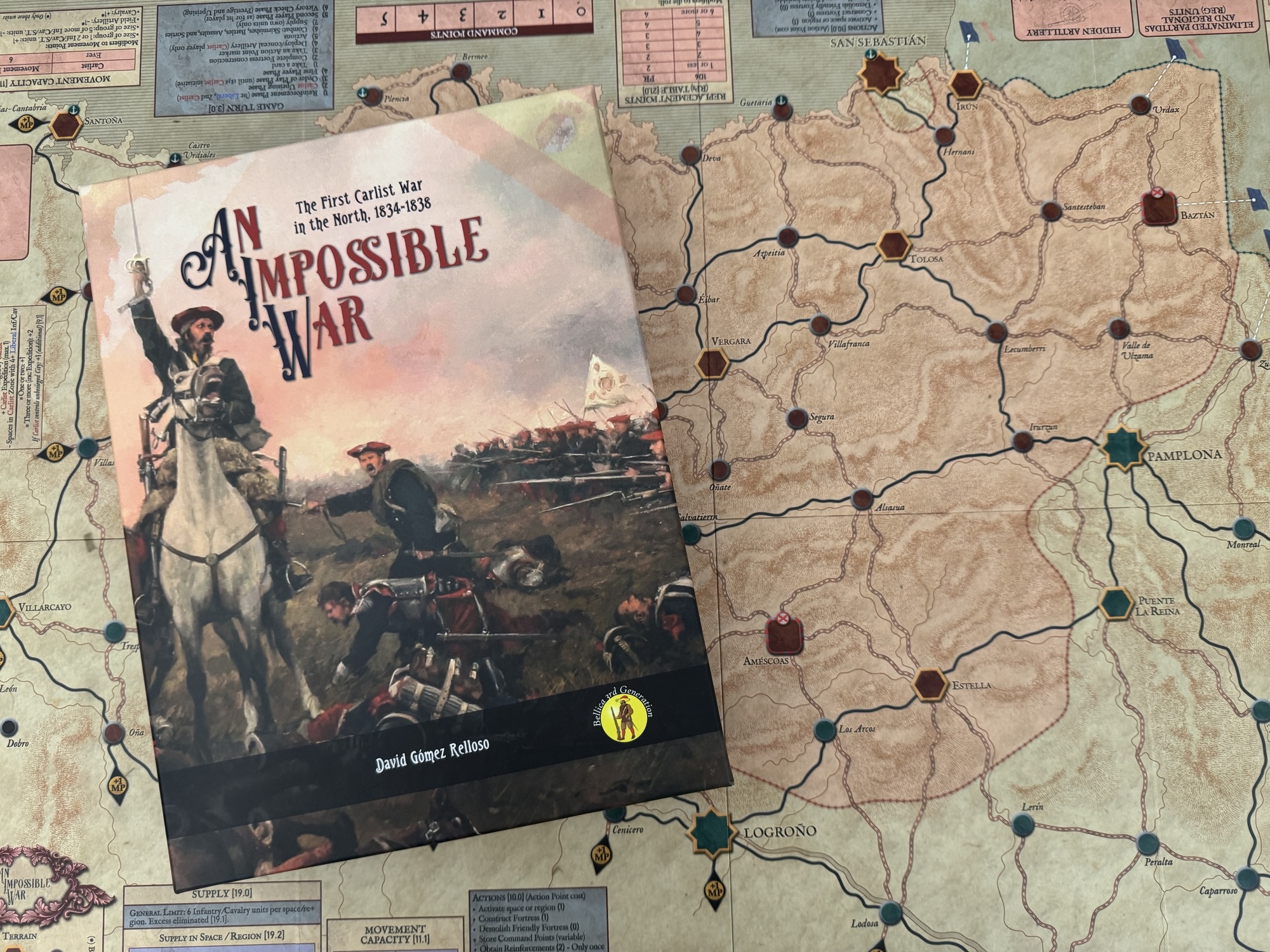 An Impossible War: The First Carlist War in the North, 1834-1838 from Bellica Third Generation is a block wargame that recreates the First Carlist War in the North of Spain which was a civil war between the Carlists who supported the succession of the late king’s brother Carlos de Borbón and the progressive and centralist supporters of the regent Maria Christina acting for Isabella II of Spain who were referred to as the Liberals. The game uses blocks representing units but also includes counters and uses cards. I was able to play the game about a month or so ago with Francisco Ronco who owns the publishing company Bellica Third Generation and very much enjoyed the game and how it represented this interesting struggle.