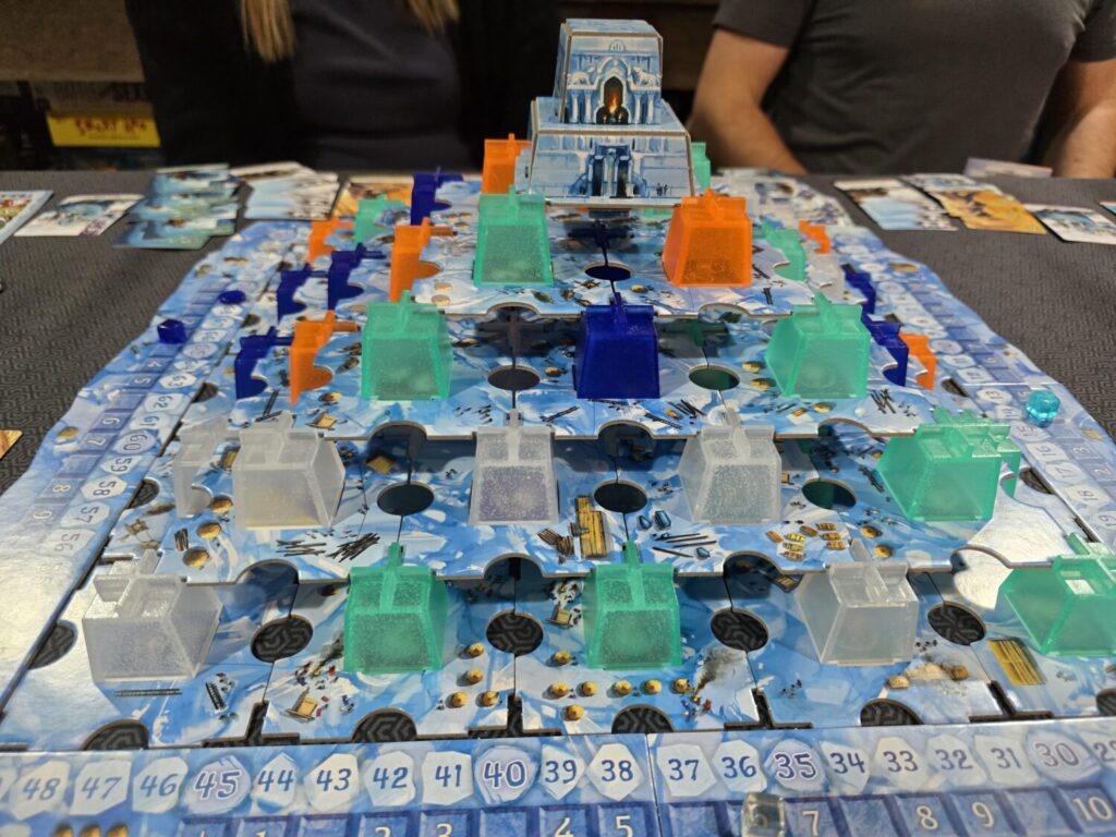 Whale Riders excited me because it comes from a power duo: Knizia on design and Vincent Dutrait on art. Dutrait’s work has become increasingly easy to spot as I’ve gone deeper into the hobby, and here his contribution is excellent. The thematic art is rich, depicting Indigenous Arctic tribes using handsome whales and other massive sea creatures as mounts. But despite that pedigree, this is not one for the Knizia hall of fame.