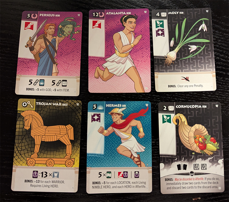For those who’ve never played, The Fox in the Forest distinguishes itself from the bulk of trick-takers in two ways. Way the first: all of the odd-numbered cards in this non-traditional deck have special powers that trigger when played. Normally, I try not to get bogged down in the weeds when reviewing a game, but I do think the powers here are illustrative: The 1 in each suit lets you lead the next trick even if you lose, the 3 lets you change the trump suit, the 5 lets you draw one of the cards that weren’t dealt that round before discarding any card from your hand, the 7 is worth a point for whoever wins it, the 9 is always considered a trump card, and the 11 forces your opponent’s highest card in the same suit.