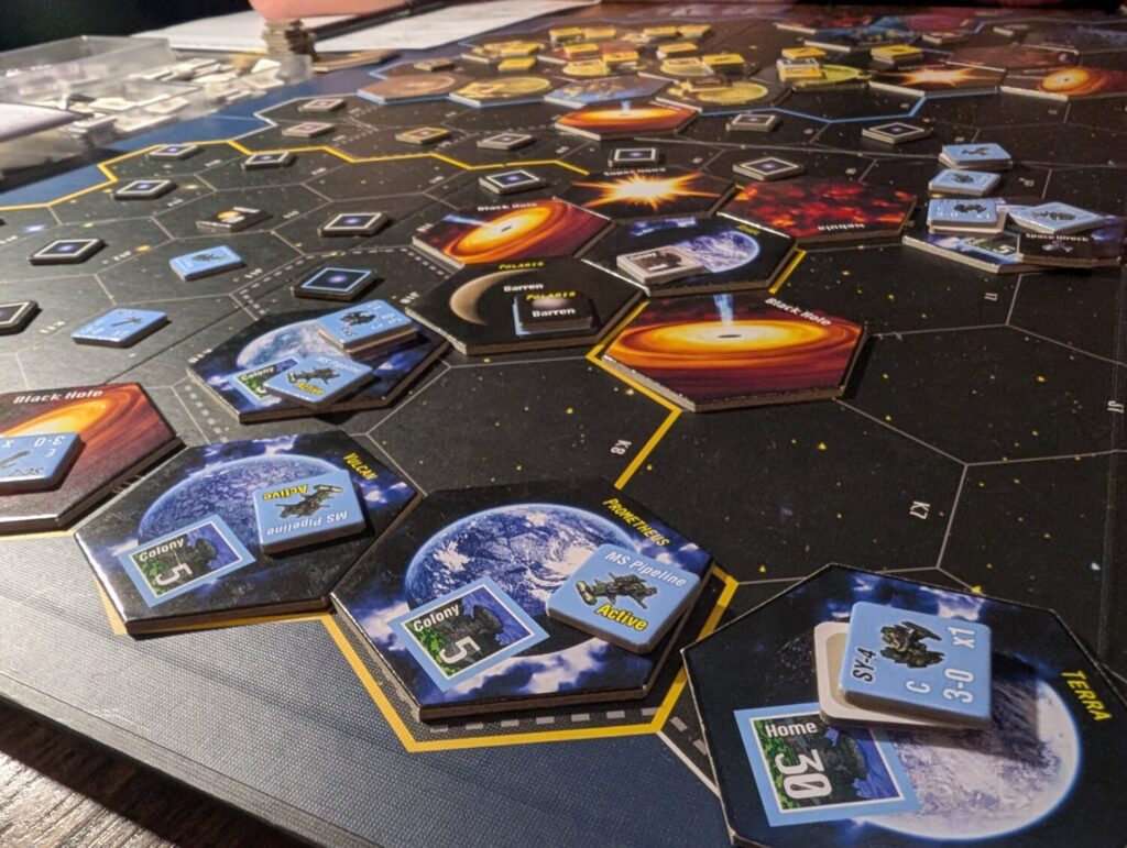 Unfortunately, Xenology doesn’t capture the weirdness of my friend’s game, nor does it capture the magic of the foundational eurogame elements it deploys across its own design. It’s a “do A so you can acquire C so you can do B and score some points” sort of game, nothing more, nothing less. It has the trappings of a much more interesting game, that resolves into something whose end result feels arbitrary and mushy, and ultimately just fades in with a broad swathe of other games in spite of the unique setting.